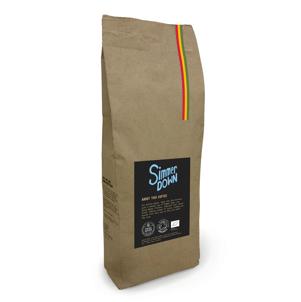 Pro klidné nálady a pomalé ranní probuzení – dopřejte si hladkou šálek kávy Simmer Down, bezkofeinové směsi připravované metodou Swiss Water Process, bez chemie. Jemné tóny kakaa, muškátového oříšku a koření naplní váš šálek a pomohou vám šířit lásku dál.